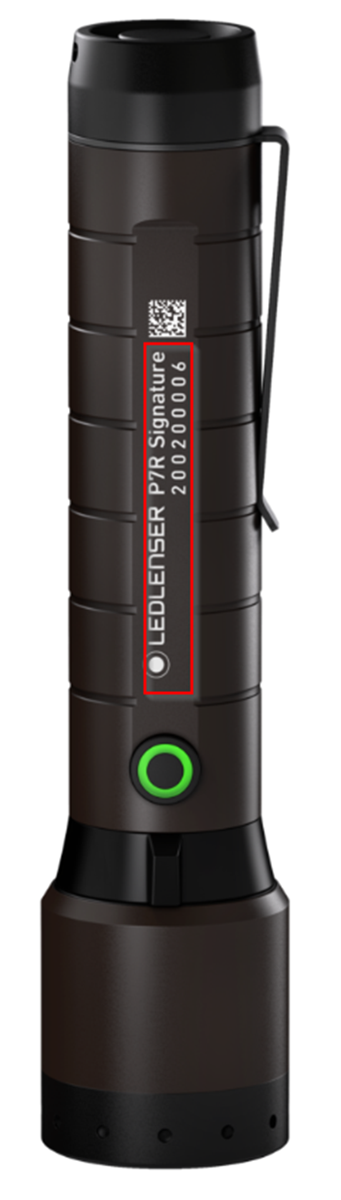 Die Seriennummer ist die 10-stellige Zahlenfolge auf Deinem Ledlenser-Produkt selbst, normalerweise neben der Modellbezeichnung - z.B. '21110373246'.